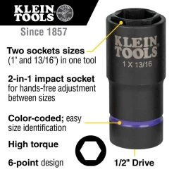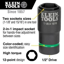 Klein Tools 2-in-1 Impact Socket, 1-1/8″x15/16″, Model 66066*