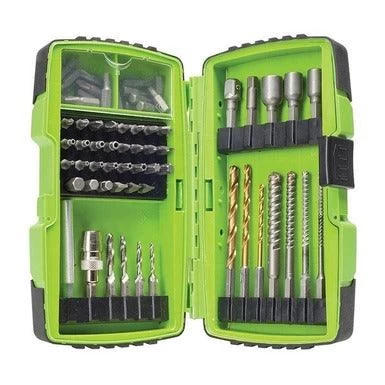 - Kit includes: bit holders, masonry drill bits, high speed titanium coated drill bits, flat screwdriver bits, hex screwdriver bits, phillips screwdriver bits, hex screwdriver bits, square screwdriver bits, torx screwdriver bits, spanner security bits, hex security bits, torx security bits, magnetic nut drivers, square socket adapters and drill taps.