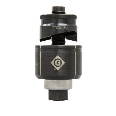 The manual knockout set is optimized for 10-gauge mild steel. It has alignment markings to help increase accuracy.