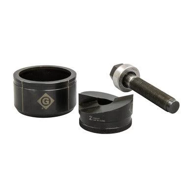 The knockout set’s special punch profile splits slugs to easily remove them. The knurled edge allows for a better grip.