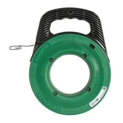 The 65′ steel fish tape offers durability and excellent fishing performance. The oil-tempered spring steel and rugged case and comfortable handle makes cable pulling and fishing fast and easy.