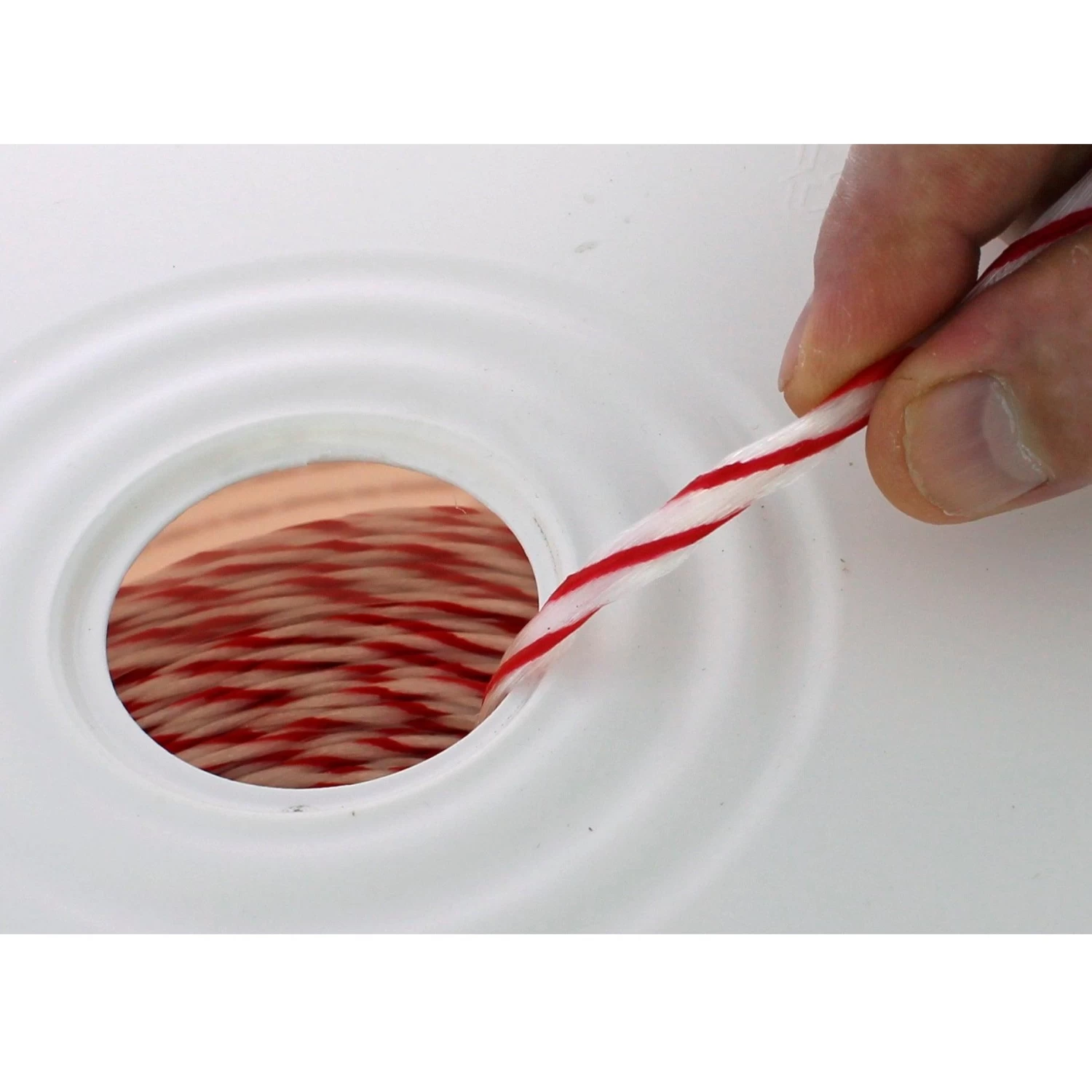 Powr-Fish extra heavy-duty pull-line is white with the red tracer for easy identification. It is a continuous-fiber polyline that can be blown directly into a conduit. It will not rot or mildew and can be left in conduit for future use. Pull-line features convenient packaging in a bucket for 2,200 ft length with pre-punched top for easy access, and to keep the pull-line from spilling or tangling. It is considered an extra heavy-duty pull-line and exhibits 210 lb. tensile strength.