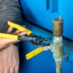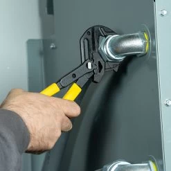 Klein’s Plier Wrench functions as an adjustable wrench on flat-sided fasteners as well a pump plier for pipe and other round objects. Its reversible jaw provides smooth parallel jaws characteristics of traditional plier wrenches, with the added versatility of knurled teeth on the reverse side when extra bite is needed, as well as unique and efficient adjustment.