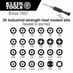 Klein Tools’ Multi-bit Screwdrivers help make your job a little easier. The 27-in-1 Tamperproof Screwdriver offers 26 specialty bits conveniently stored right in the handle and an integrated 1/4-Inch nut driver. Powerful rare earth magnets in the barrel secure the bits and fasteners. This screwdriver features industrial-strength bits as well as Cushion-Grip handles with spin caps for outstanding comfort and control.