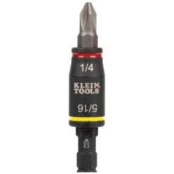 The 3-in-1 Impact Flip socket allows for quick switching between drive sizes. For use on an impact driver, this versatile socket includes three hex sizes: 5/16-Inch, 1/4-inch shallow (driver) and 1/4-Inch deep (bit holder). Rare-Earth magnet holds bits and hex head fasteners. Will also fit a Klein Tools screwdriver handles (Cat. Nos. 32303 and 32304).
