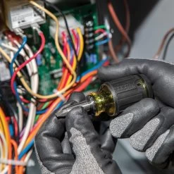 Klein Tools’ Adjustable Length Screwdrivers function both as multi-bit screwdrivers and impact driver attachments. With these screwdrivers, there is no need to run back to your tool bag. Industrial-strength bits are conveniently housed in the handle. Simply adjust the length of the blades to allow for easier access or remove to use with an impact driver. Powerful rare earth magnets secure bits and fasteners while the Cushion-Grip handle and spin cap provide outstanding comfort and control.