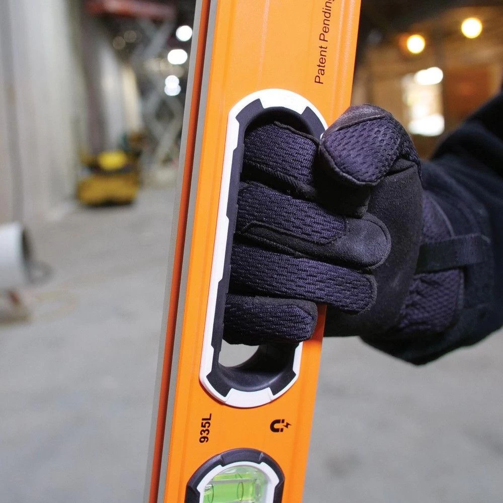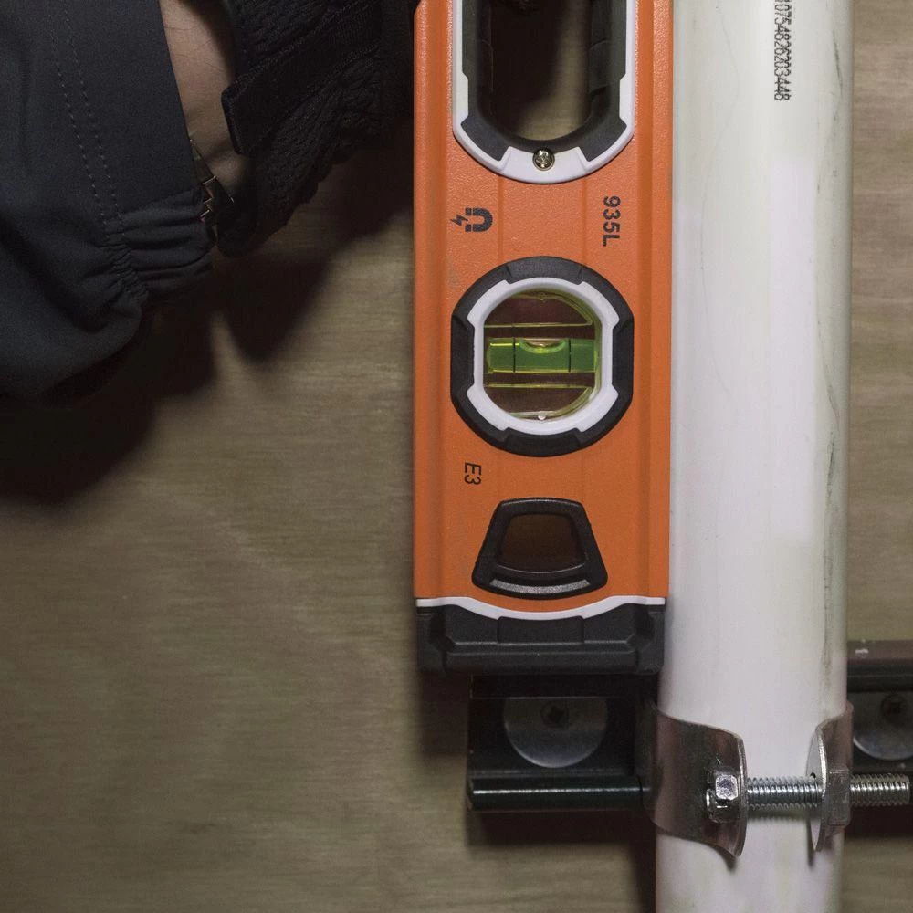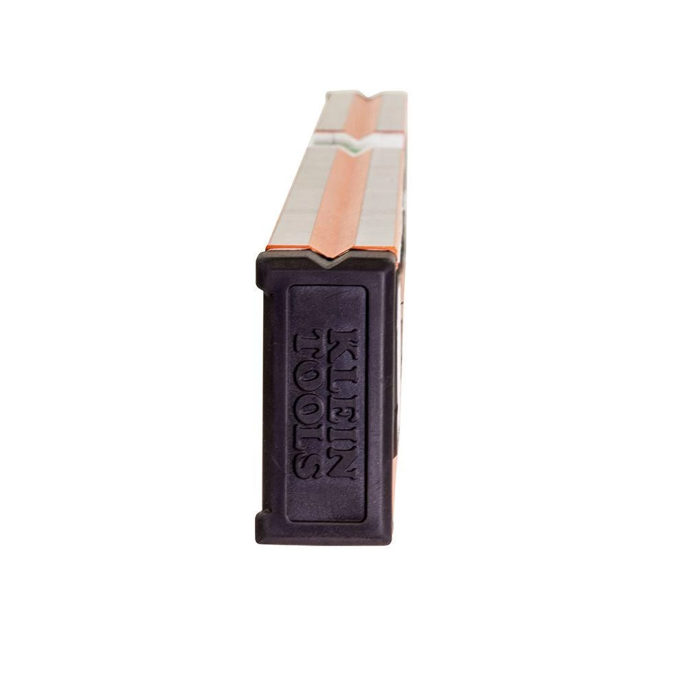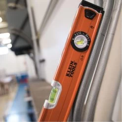 Klein Tools’ 24-Inch Bubble Level features powerful rare earth magnets with patented magnet track on one side and V-groove on the other. This precision machined level is accurate and durable with an orange body for visibility so it won’t get lost on conduit or pipe. Rubberized end-caps provide increased drop protection of 9.9-Foot.