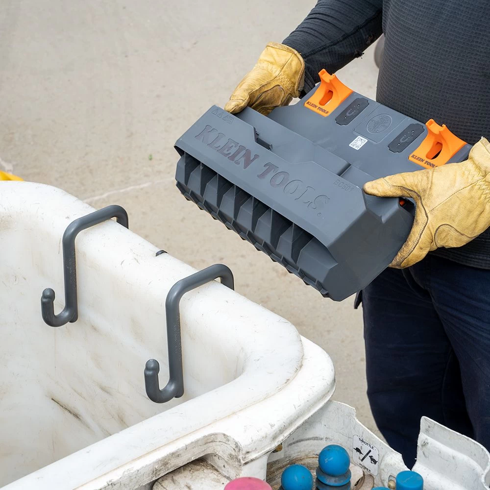 The Bucket Work Center is an ecosystem that will revamp the way a Lineman works. It allows Lineman to customize their workspace, just like other professionals customize their office space. Klein Tools’ 2-Inch S-Hook is made of impact resistant nylon and connects to all of the Bucket Work Center S-Hook modules. This will be ”the Lineman’s office”. The S-Hook System easily attaches to aerial buckets with a standard 2-Inch or 3-Inch (5.1 or 7.6 cm) bucket lip. An assortment of modules are available to customize each workstation to fit the tools needed for the job.