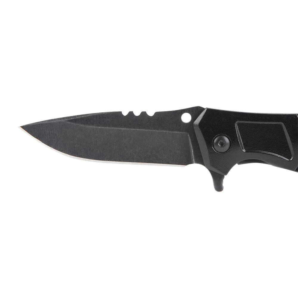 - Rugged aluminum handle and a frame lock secures the blade in open position