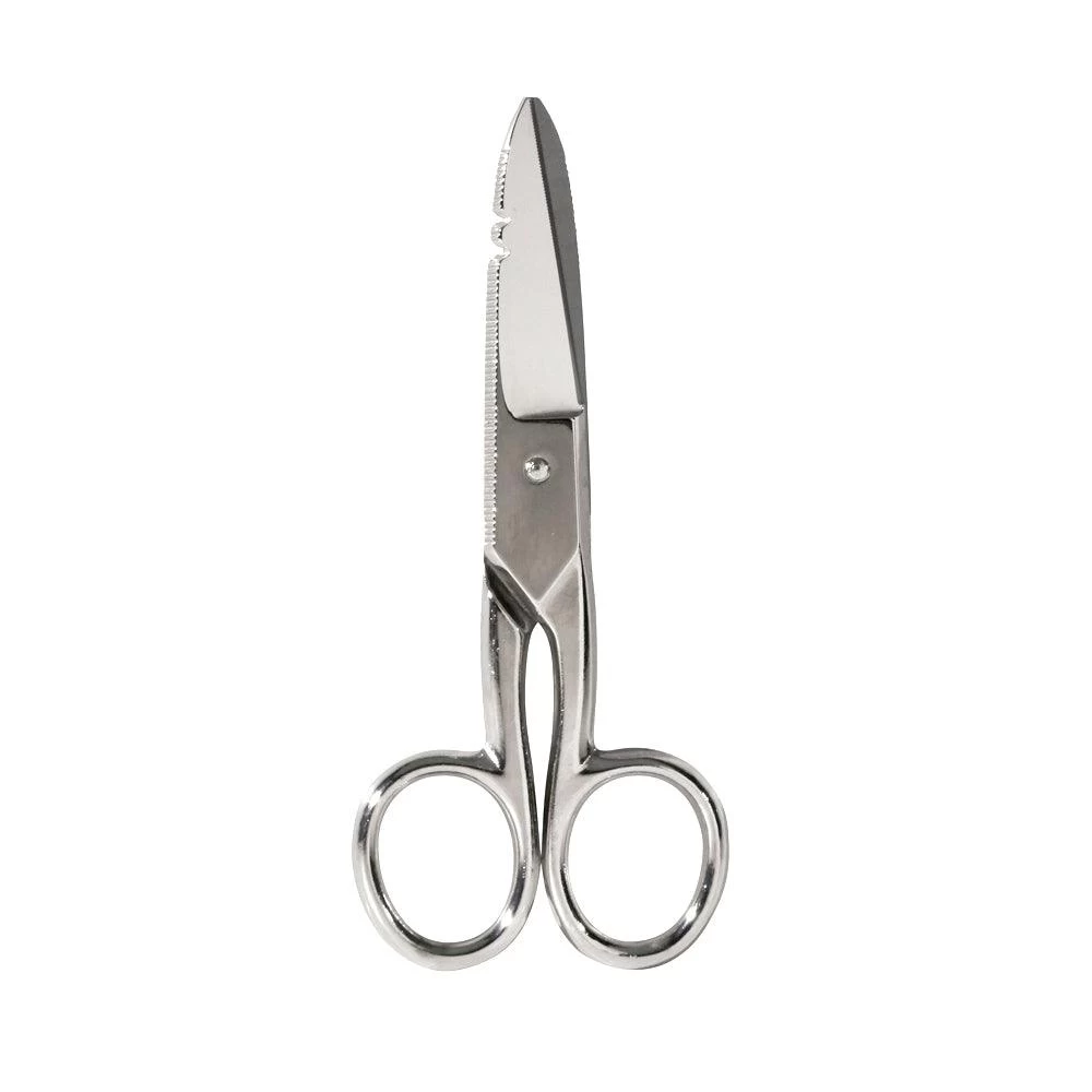 These Klein Tools Electrician’s Scissors with stripping notches are made for telecom and electrical applications. They cut wire, cable and cordage including electrical communication 19 AWG and 23 AWG wire. The upper blade features wire stripping notches. The serrated lower blade allows for non-slip cutting action.