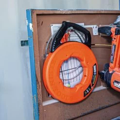 The Klein Tools’ 50-Foot Fiberglass Fish Tape with Spiral Steel Leader is perfect for wire runs associated with commercial, residential and voice-data-video installations. The optimized housing and handle design decreases payout effort and reduces binding. A multiple-position handle allows for a firm, steady grip as you pull or rewind the tape. The unique interior case shape combines the leverage of square cases and the comfort of round cases, which makes rewinding tape after a long run easier. The tape features laser-etched descending markings placed at every foot. These markings allow you to accurately measure the depth of conduit runs and determine the amount of tape left to pay out.