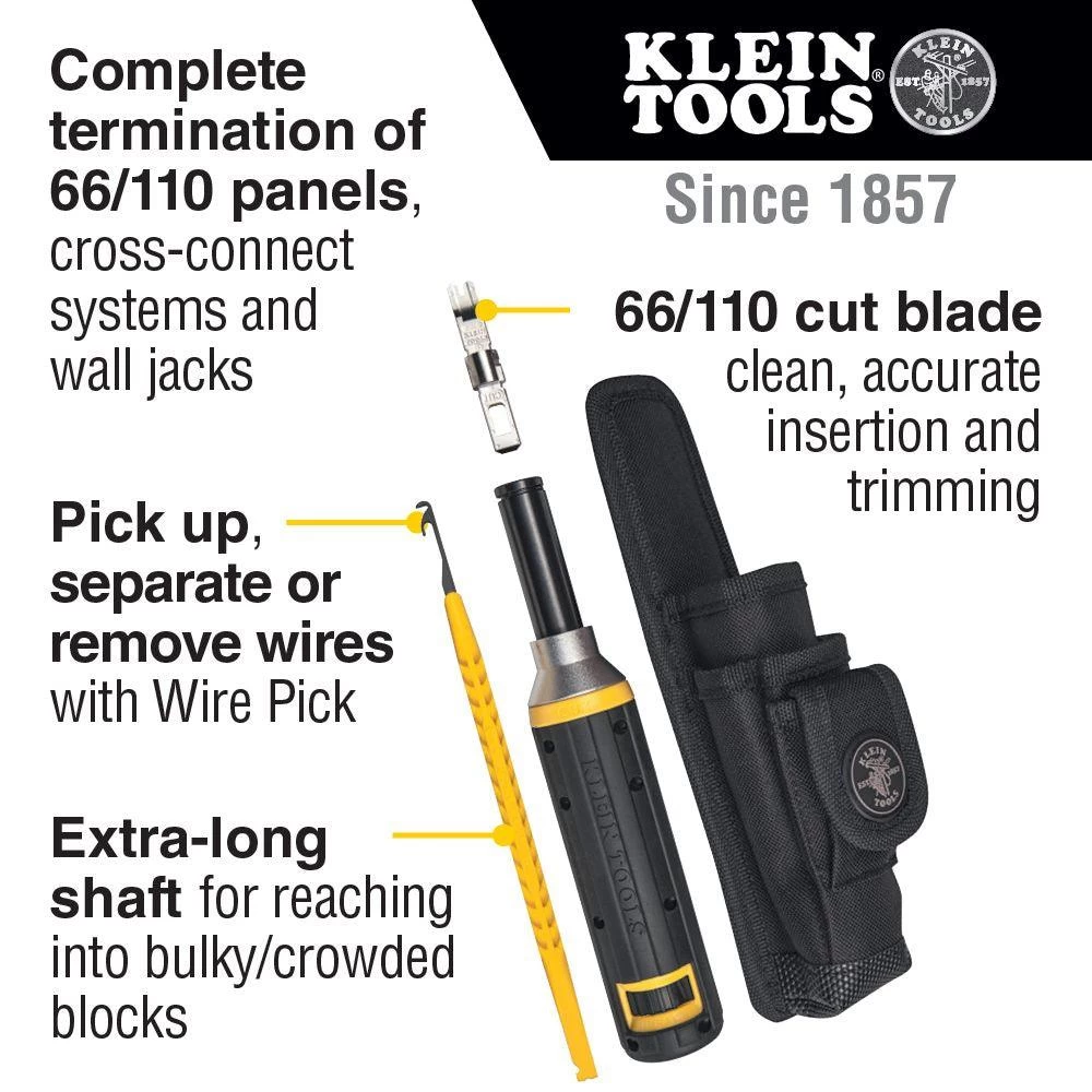 - 4-Piece tool kit for complete termination of 66/110 panels, cross-connect systems and wall jacks