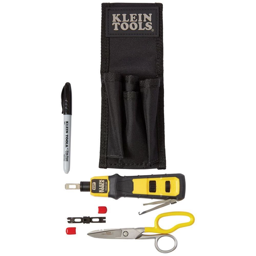 - Kit includes: Free-Fall Stainless Steel Electrician’s Scissors (Cat. No. 2100-8), Impact Punchdown Tool (Cat. No. VDV427-300), Punchdown Tool Blades (Cat. Nos. VDV427-104 and VDV417-110), Permanent Marker (Cat. No. 98554) and 4-Pocket Tool Pouch