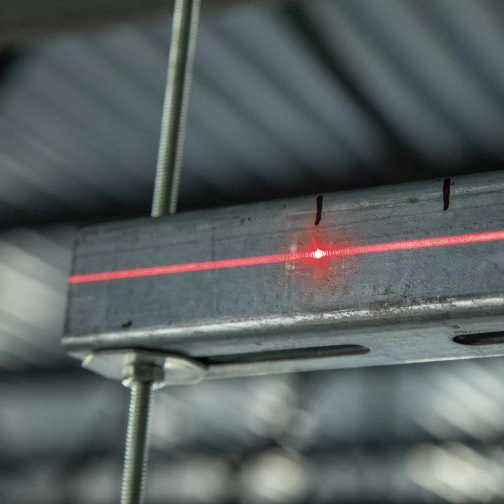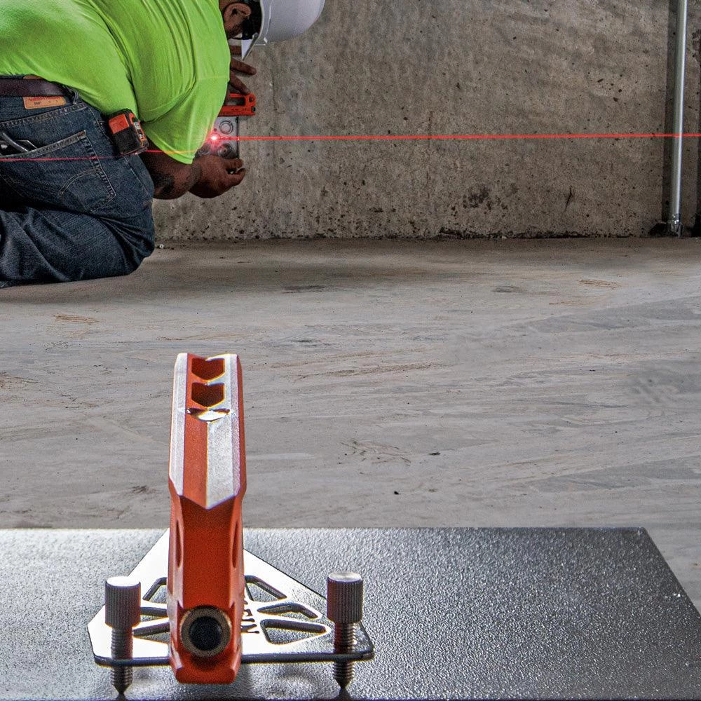 The Klein Tools Laser Line Bubble Level LBL100 projects a horizontal laser line and spot parallel to the base of the level up to 75-Foot (22.9 m). Three easy to read vials identify horizontal and cross at 0-Degree level and vertical at 90-Degree. The strong rare earth magnetic base of the level attaches to the included leveling stand and other ferromagnetic surfaces. The top features a V-groove to fit the contour of pipe and conduit.