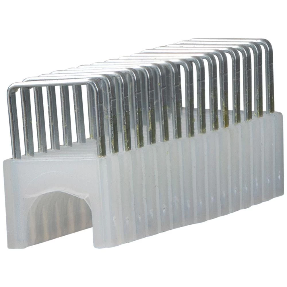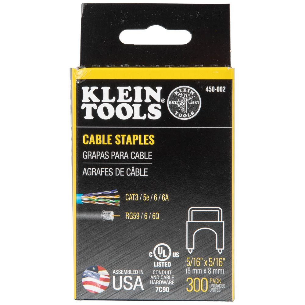 These heavy-duty staples are designed for safe and secure installation of coax and CAT3/5e and CAT6/6A data cables up to 5/16-Inch (8 mm) in width. For exclusive use with Klein’s Loose Cable Stapler (Cat. No. 450-100). These UL listed insulated staples are available in packs of 300.