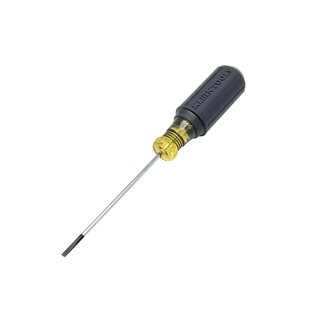 Klein Tools’ Terminal Block Screwdriver is precision-machined for an exact fit. This flat head screwdriver provides 76-Percent higher torque values than the required ASME B107 Standard. Its Cushion-Grip Handle offers the comfort needed for all-day work.