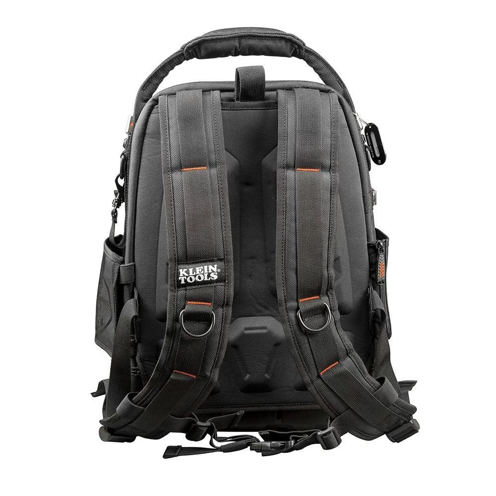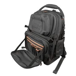 The new Klein Tools’ TradesmanPro™ Tool Master Backpack is a seriously tough backpack starting with a handle reinforced with aircraft cable, 1680d ballistic weave material construction, and a fully-molded waterproof bottom. With 48 pockets inside and out, this backpack has plenty of room for all sorts of hand tools, tablets, cables and wires, safety equipment, attachments, accessories, and more. In fact, the adjustable front pouch is a perfect spot for your drill. Need only a few tools for your next task? The removable tool caddy is designed for you to take just what you need. Both the tool caddy and the backpack can be hung, keeping your tools easily within reach.