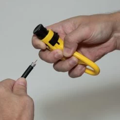 - Cable Stripper features exclusive sliding cable stop pre-measures cable for fast, accurate and repeatable strips